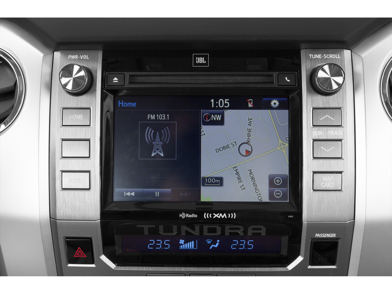 - Radio: Entune Premium w/JBL Audio & Navigation -inc: AM/FM/HD radio, CD player MP3/WMA playback capability, high-resolution 7" touch-screen display, auxiliary audio jack, USB 2.0 port, iPod connectivity and control, iTunes Tagging, traffic and weather, JBL speakers and amplifier, Bluetooth® hands-free phone capability, phone book access, voice recognition and music streaming, Entune App Suite, includes Bing, iHeartRadio, MovieTickets.com, OpenTable, Pandora, Yelp and Facebook Places; real-time info including traffic, weather, fuel prices, sports and stocks, SIRIUSXM Satellite Radio, 90-day free trial